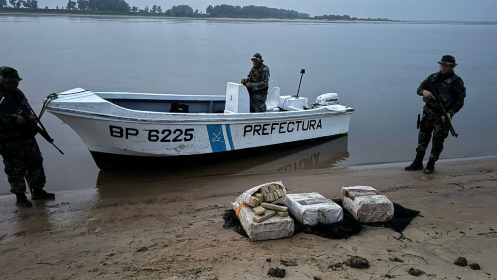 Ante la sospecha de que se trataba de un ilícito, los prefectos se desplazaron hasta el lugar, donde hallaron 17 fardos dispersos sobre la costa argentina.