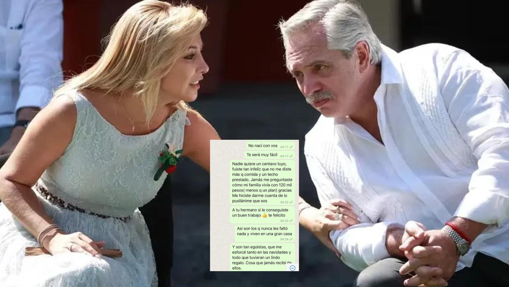 En la conversación,Yañez le asegura a Fernández que no aceptará ni una moneda de su parte. Y también le reprocha que vivió junto a él con demasiada austeridad y sin ayuda de ningún tipo para su familia, aunque la necesitaba.“No te preocupes”, dice Fabiola para después aclararle a Fernández que antes de conocerlo ella ya tenía una vida que no dependía de él: “No nací con vos. Nadie quiere un centavo tuyo, fuiste tan infeliz que no me diste más que comida y un techo prestado”.