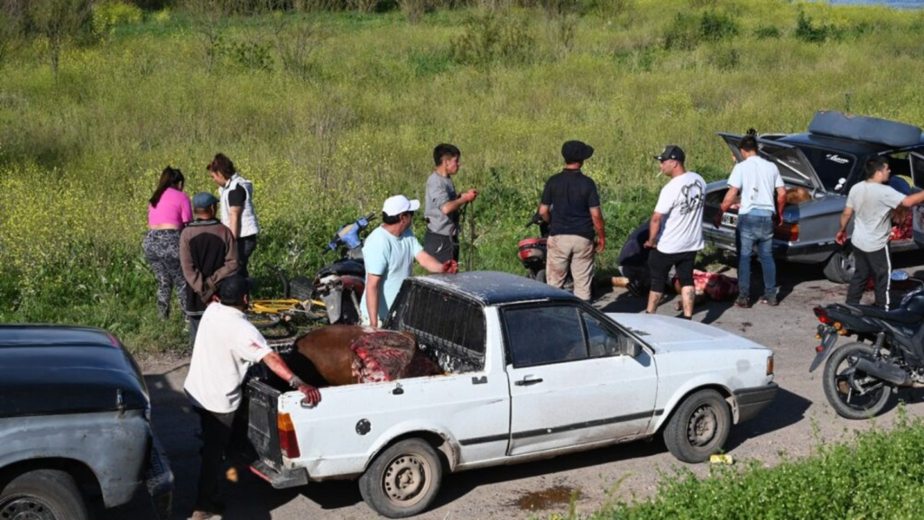 A medida que se desarrollaban los hechos, un grupo de vecinos comenzó a carnear los animales ya muertos o heridos. Sin embargo, la situación se tornó aún más alarmante cuando otros comenzaron a perseguir a las vacas que, atemorizadas, intentaban escapar. “Están carneando las vacas”, alertaron quienes pasaban por la zona, mientras que otros se filmaron cargando carne en sus vehículos y celebrando la carneada.