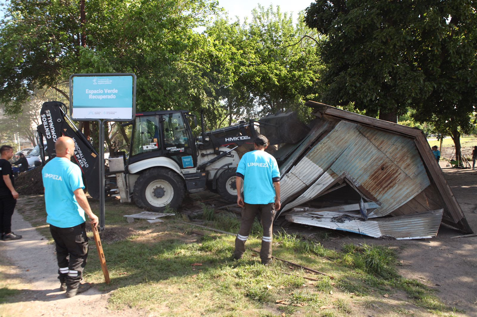 Como parte de la intervención, se trabaja con diversas cuadrillas en la remoción de la casilla que ocupada de forma irregular la vía pública, junto a la limpieza, intervención y puesta en valor del mencionado espacio verde.