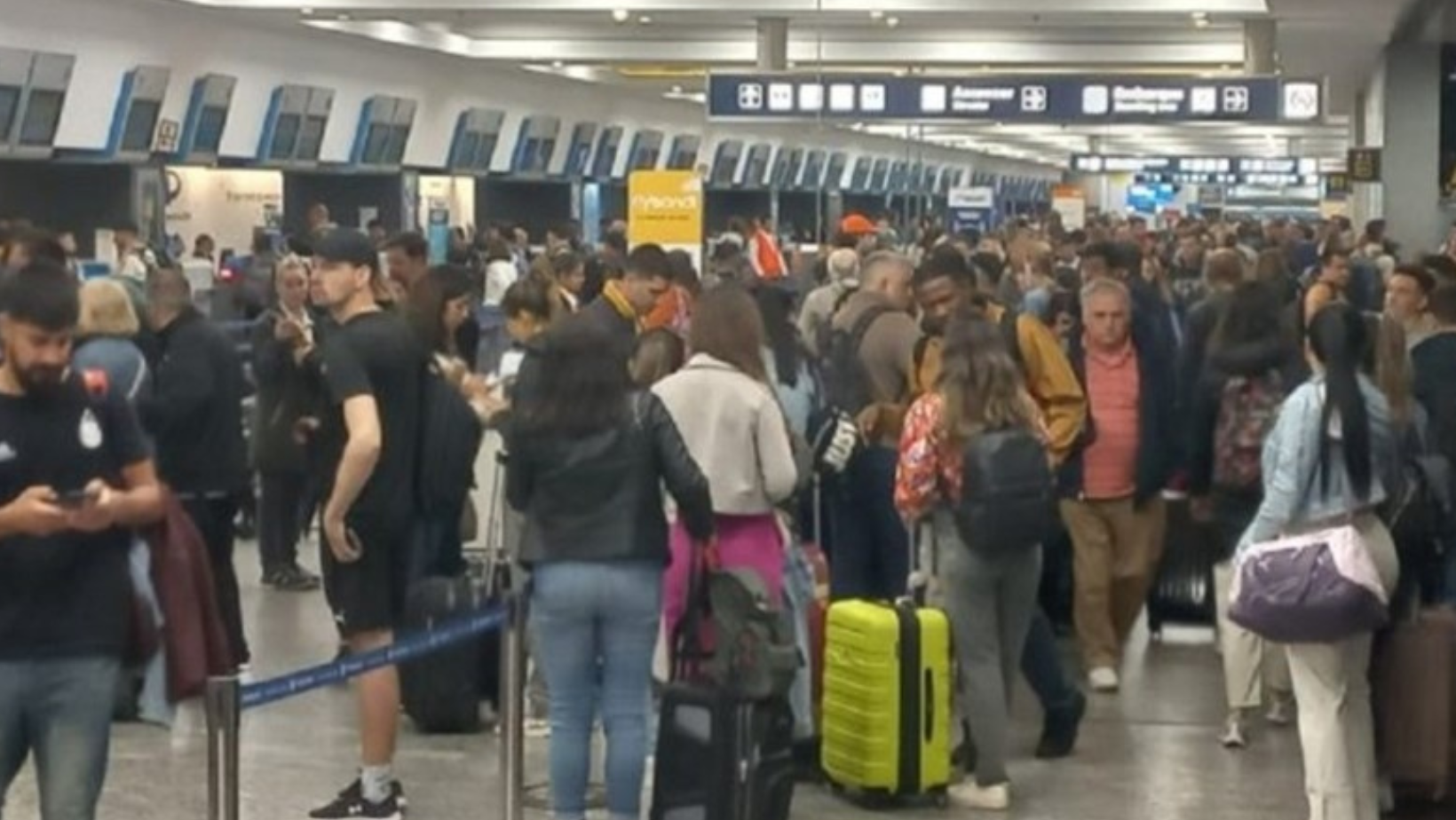 En partidas no están despachando valijas y en arribos bajan pasajeros pero no su equipaje. Además, hay vuelos cancelados de todas las aerolíneas y muchos están con demoras.