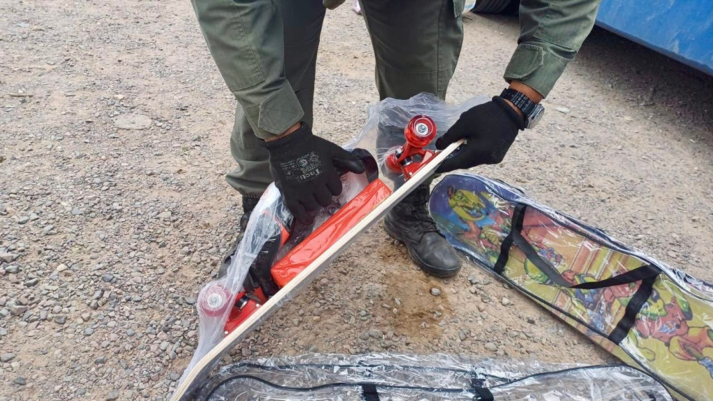 Cuando los uniformados registraron el interior de la bodega y el pasillo del rodado, observaron 30 patinetas con cascos de protección, 15 de las cuales ocultaban un “ladrillo” cada uno.