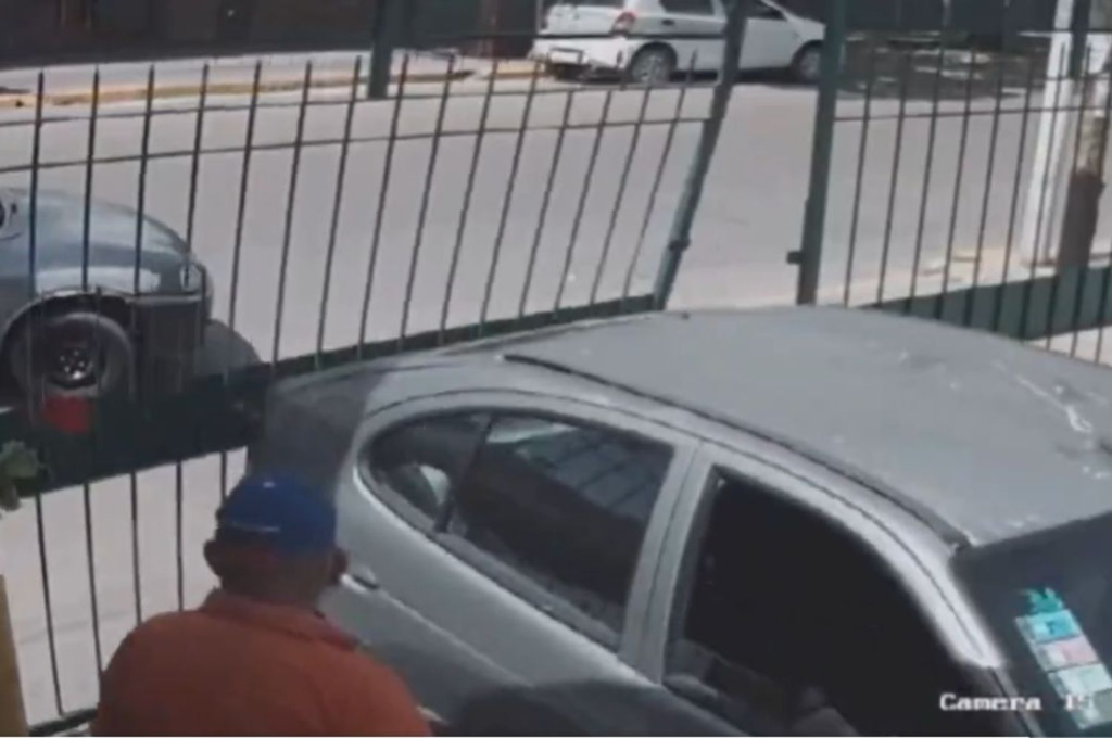 El violento episodio ocurrió este lunes por la tarde en un estacionamiento privado “Pasaje Sur”, ubicado sobre la calle Joly al 2800 y lindero a la Secretaría de Tránsito y Transporte de la Municipalidad de Moreno. La insólita secuencia quedó registrada por las cámaras de seguridad del establecimiento.