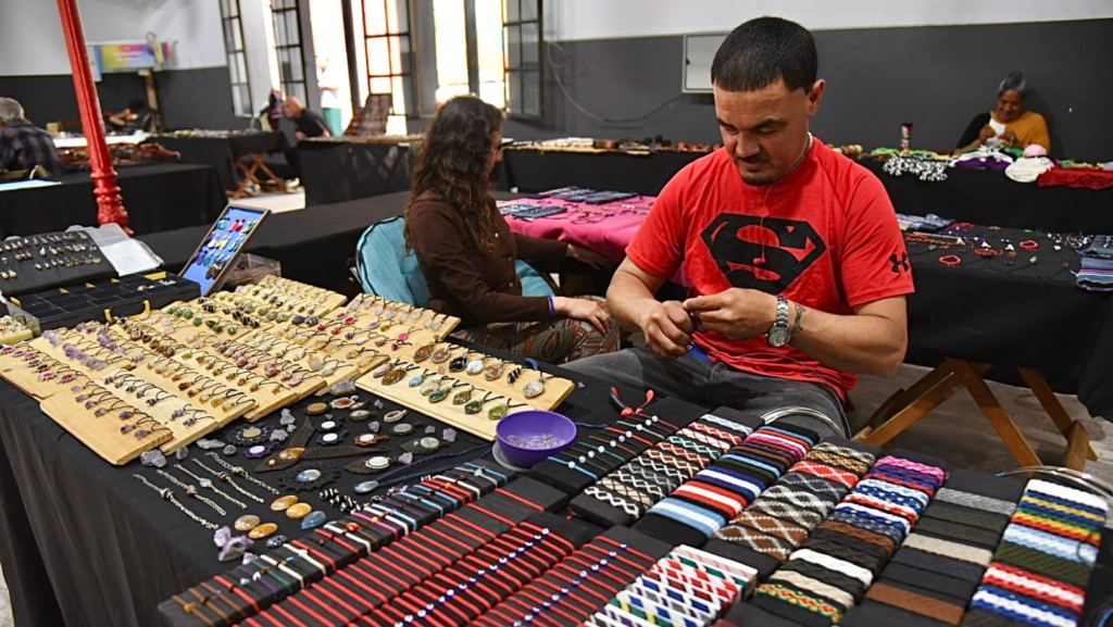 También se pueden encontrar productos artesanales, como collares con piedras engarzadas, pulseras, anillos, cinturones, aros, artículos de macramé, tobilleras, tejidos y piezas de cuero.