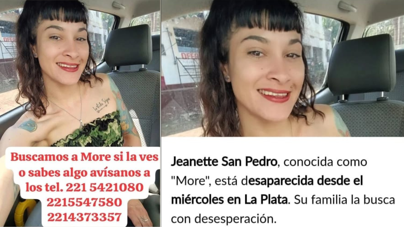 Se trata de Jeanette San Pedro conocida como More, de 26 años de edad el pasado miércoles a las 15 hs salió de su casa de 34 entre 152 y 153 de la localidad de San Carlos le dijo a su mamá ahí vengo y no volvió más.