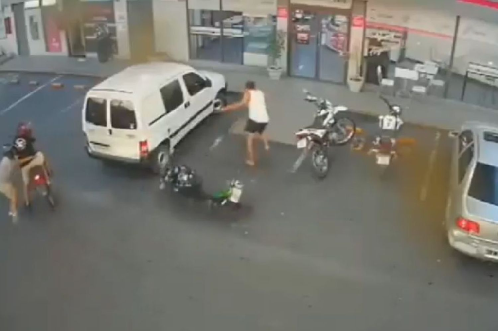 Este martes dos motochorros le robaron la moto a un hombre en una estación de servicio de Merlo. El asalto, que ocurrió pasadas las 20.00 frente al hospital Héroes de Malvinas, quedó registrado por las cámaras de seguridad del lugar.