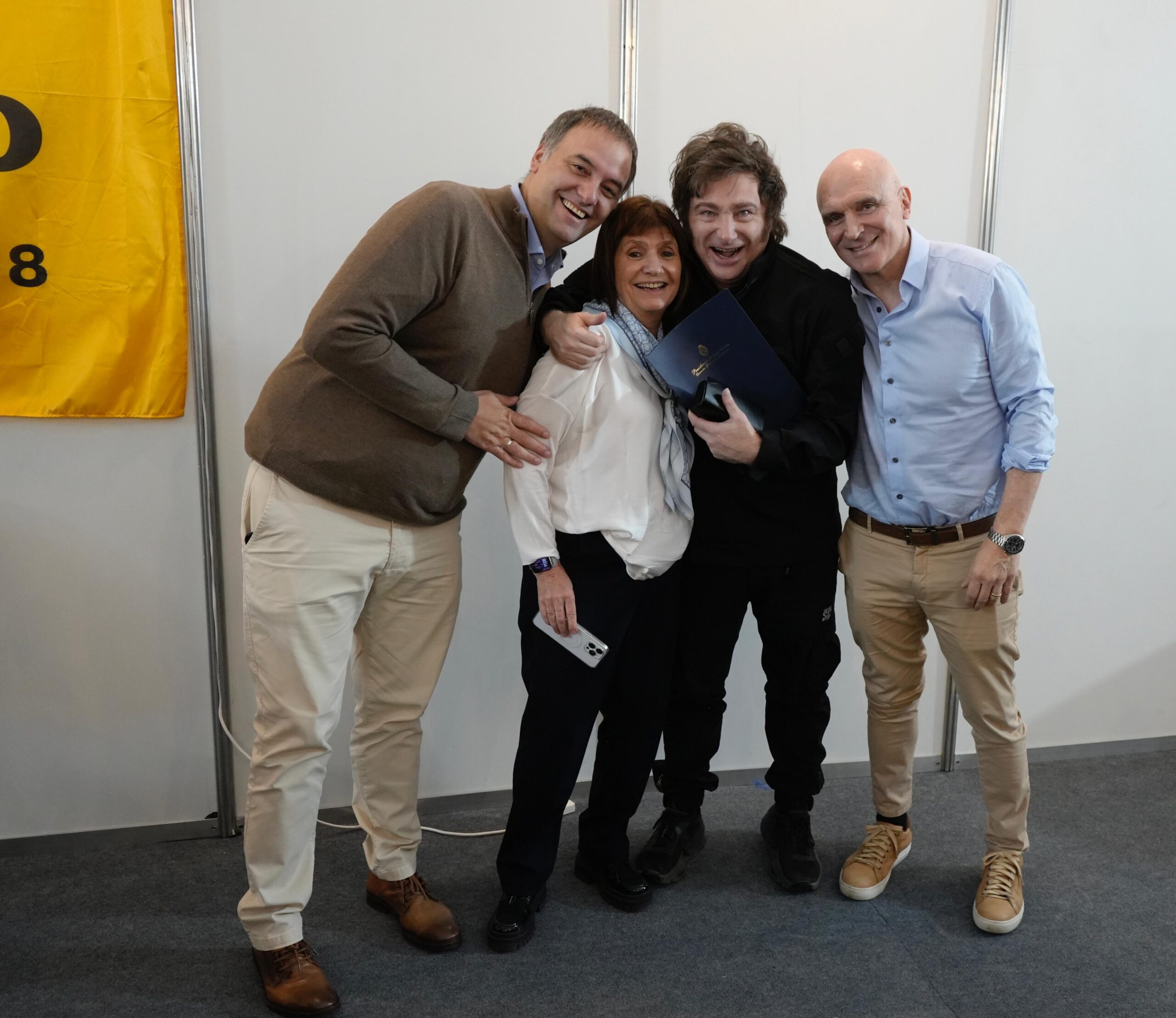 Milei aseveró que “pasamos de gobiernos que no cumplían nada a tener un programa híper exigente en el que solo en un cuarto del período cumplimos el 97% de las promesas”, y en ese sentido ratificó que “a medida que se siga consolidando el sendero virtuoso, el superávit fiscal y la baja del gasto, continuaremos bajando las retenciones hasta que lleguen a cero y se queden ahí de una vez y para siempre”.