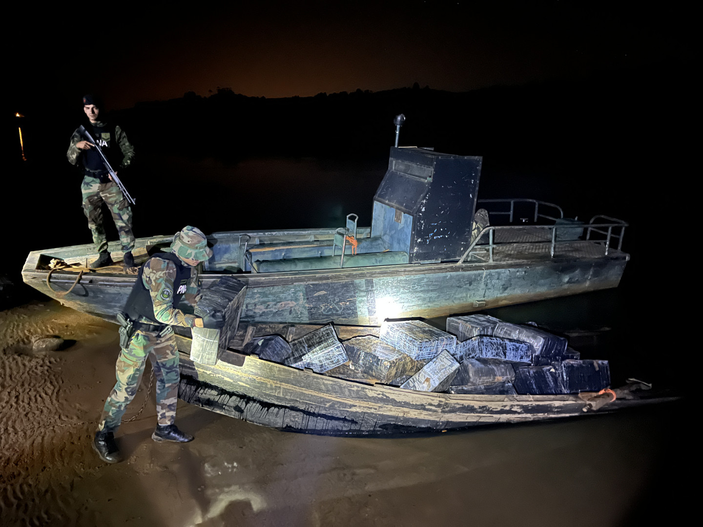 El operativo se originó cuando personal de la Fuerza, que realizaba tareas de control en la frontera fluvial del país para prevenir el delito, avistaron en cruce de dos botes cargados con bultos provenientes del Paraguay, uno de los cuales retornó a su país de origen tras dejar la carga en la costa argentina.