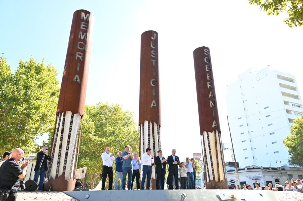 “Hoy, felizmente, esta hermosa plaza de la ciudad, por decisión de nuestro Gobierno, la administra, como corresponde, los ex veteranos de Malvinas, el CECIM. Ellos tienen la protección de este lugar, para que sea como soñamos hace más de 30 años, un espacio cultural y de memoria”, agregó el jefe comunal, acompañado por concejales, senadores, excombatientes y sus familiares, abanderados y autoridades.