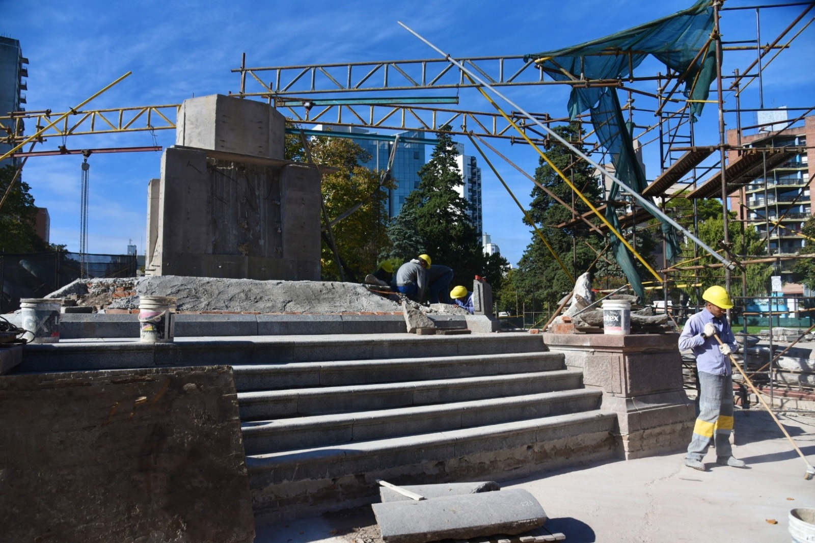 Se trabaja en la puesta en valor del monumento “Alla Fratellanza”, la restauración de columnas ornamentales, la construcción de contrapisos, la colocación de mosaicos, entre otros avances.
