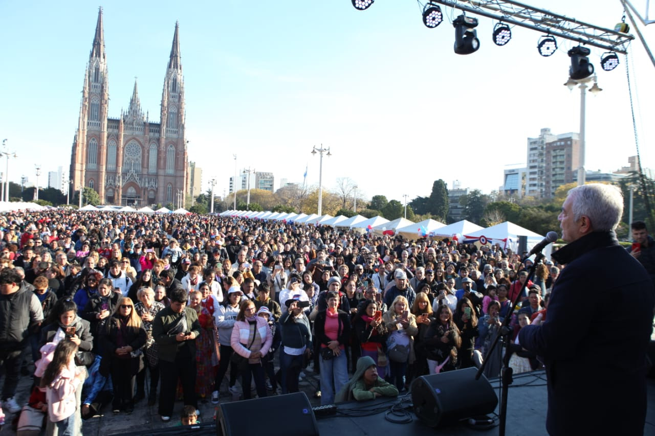 Como parte de la propuesta, la Plaza Moreno se tiñó con los colores de su bandera e invitó a los presentes a recorrer la extensa feria de artesanías tradicionales y a degustar platos clásico en el corredor gastronómico dispuesto en el lugar.