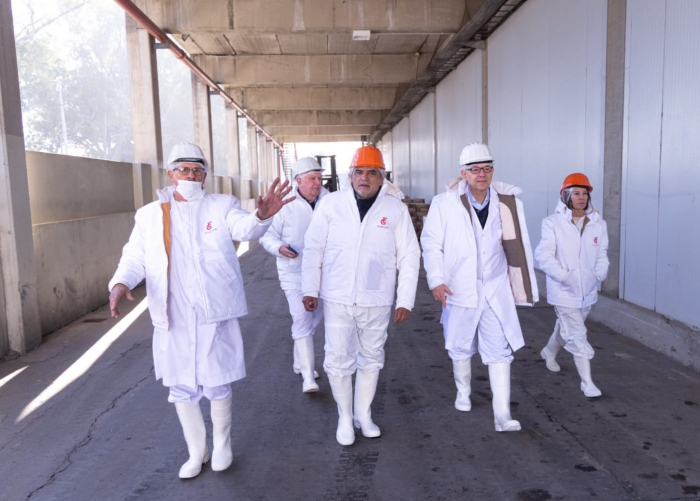Junto a la subsecretaria de Empleo, Cecilia Soiza, Carlos Riusech, padre e hijo, propietarios de la firma, y los gerentes Claudio Rodríguez, Marcelo Fiol, Marcelo Vélez y Héctor Gariglio, Correa recorrió la totalidad de la planta, se interiorizó de las distintas etapas del proceso productivo y dialogó con trabajadoras y trabajadores de las diferentes áreas.