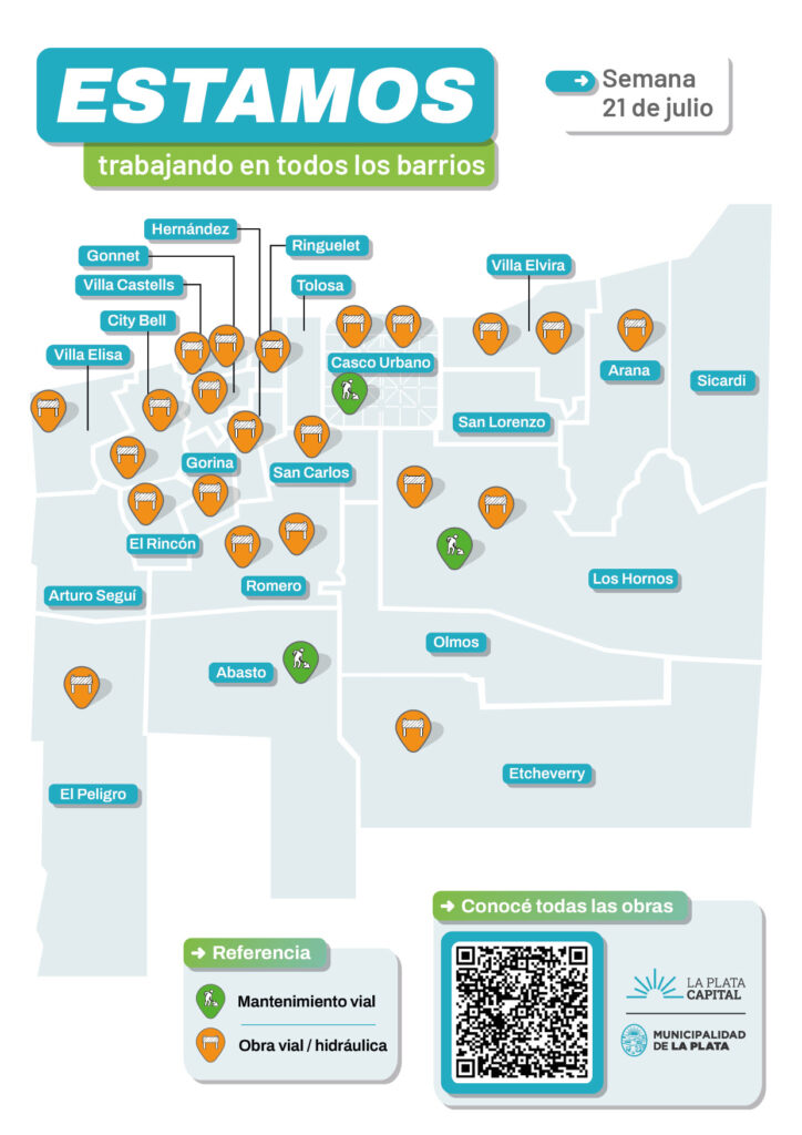 La Municipalidad de La Plata informó que se llevarán adelante cortes de tránsito parciales y totales durante los próximos días como parte de la ejecución de diversas obras, que incluyen trabajos de pavimentación, hidráulicos y de bacheo, entre otras mejoras.