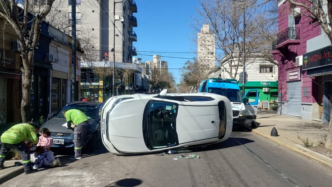 De acuerdo con el informe policial, un Fiat Cronos blanco volcó sobre la calzada luego de embestir a un Chevrolet Corsa verde que se encontraba estacionado y sin ocupantes.