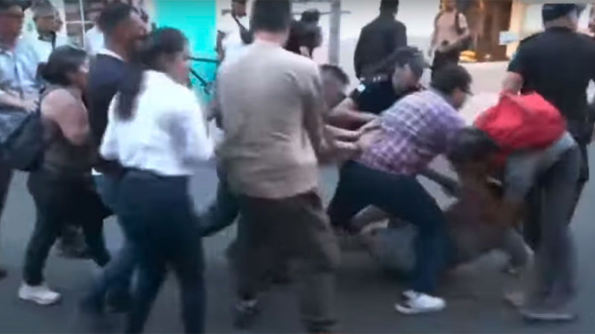 Según las imágenes difundidas, un grupo de personas comenzó a increpar a la comitiva con gritos y empujones. La custodia oficial respondió rápidamente y dispuso la salida de los dirigentes en vehículos oficiales para evitar que la situación pasara a mayores.
