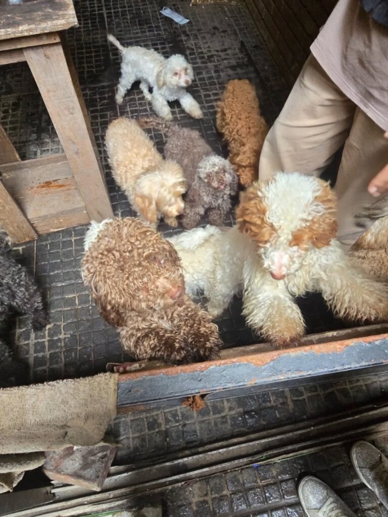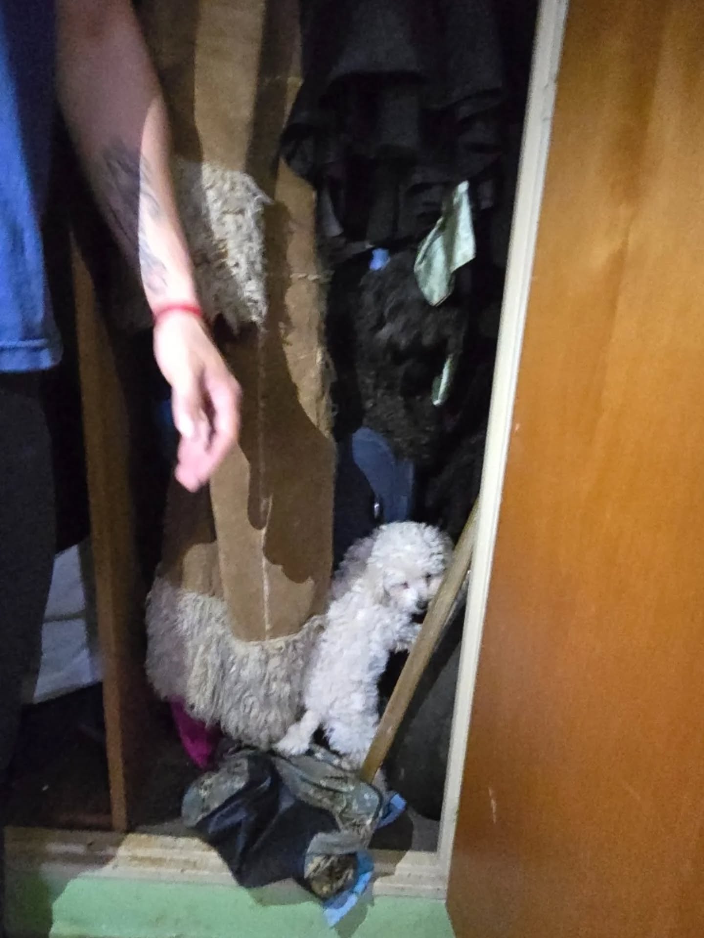 Durante el operativo se encontraron 2 cachorros de menos de 45 días dentro de un placard, 11 hembras adultas, un macho joven de 8 meses y tres hembras preñadas. Los veterinarios constataron que los animales estaban sucios, con olor a materia fecal, algunos presentaban otitis y sarro dental, y ninguno contaba con libreta sanitaria ni vacunación registrada.