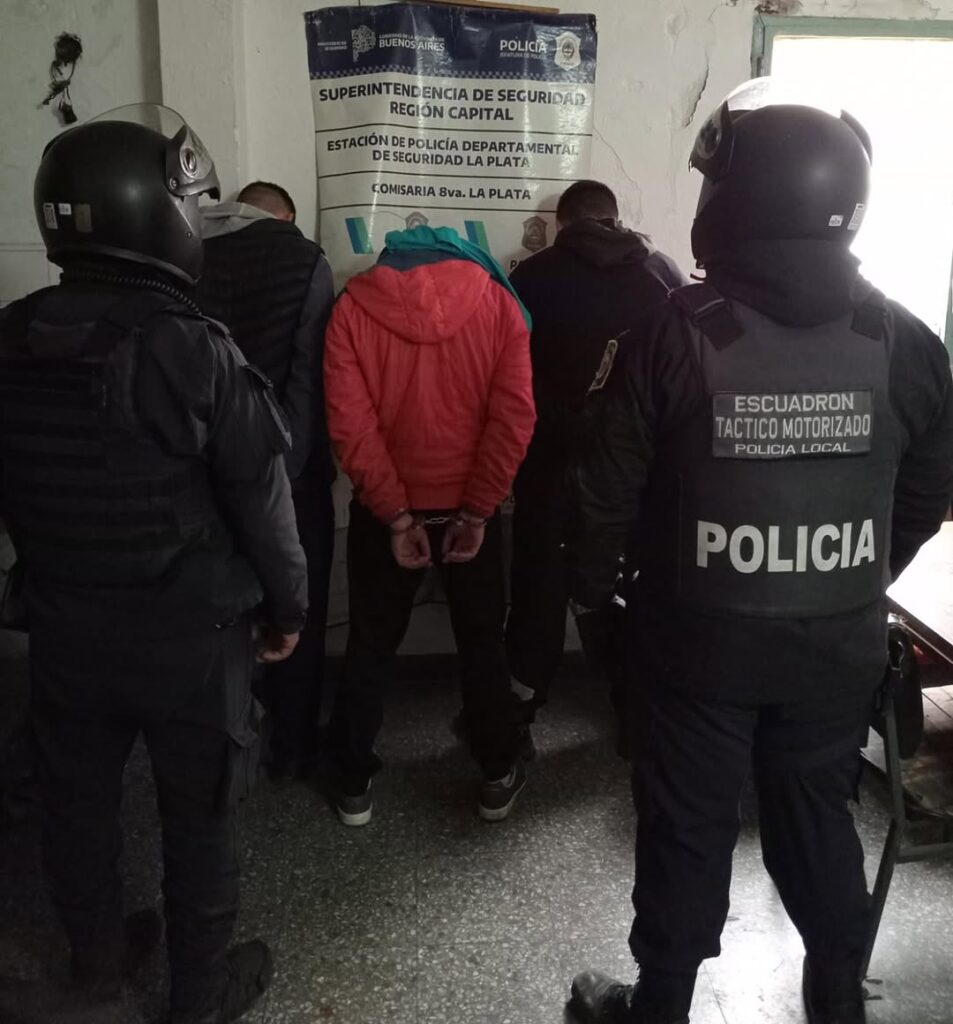 Gracias al aviso de los operadores del Centro de Monitoreo, que observaron la secuencia de la agresión, personal del Comando de Patrullas y de la División Motorizada Local desplegó un operativo cerrojo que permitió interceptar a los sospechosos en la intersección de 1 y 66.