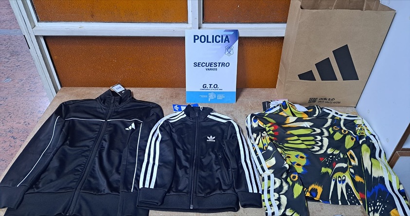 Durante la requisa, los agentes incautaron tres camperas nuevas de la marca Adidas, además de un dispositivo utilizado para retirar alarmas de seguridad y otros elementos vinculados a la modalidad “mechera”.