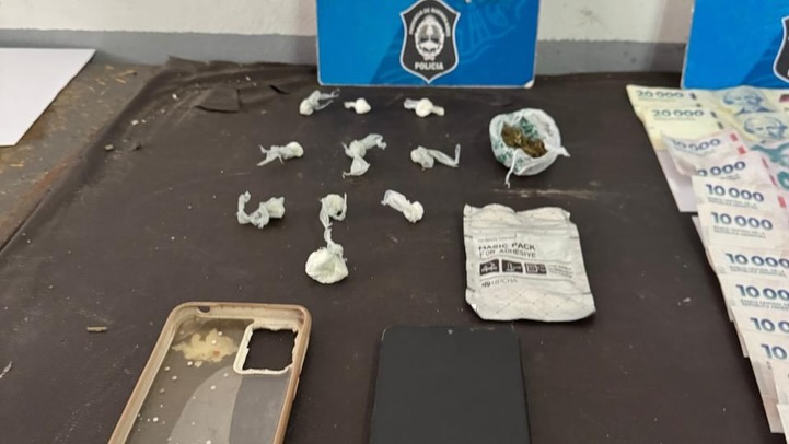 En total, se secuestraron 11 envoltorios con una sustancia blanca, compatible con cocaína, y un envoltorio con una sustancia vegetal, similar a marihuana. Además, los efectivos incautaron 160 mil pesos en efectivo, un teléfono celular Motorola G42 y la motocicleta en la que se desplazaban.