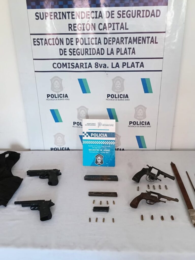 Durante los operativos, los efectivos secuestraron armas de fuego y municiones, entre ellas revólveres calibre .32 sin numeración, balas de distintos calibres, un cargador de 9 milímetros y réplicas de armas. También se incautaron armas blancas caseras, una funda de chaleco antibalas, cuatro motocicletas, un cuadro de moto con numeración adulterada, motopartes y zapatillas que pertenecerían a la víctima.
