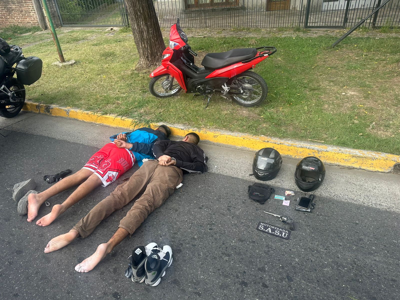 El procedimiento fue realizado por personal motorizado que patrullaba el área cuando detectó una moto roja con dos ocupantes que, al advertir la presencia policial, intentaron escapar acelerando la marcha. Durante la huida, uno de ellos arrojó un objeto a la vereda, que luego fue identificado como un revólver calibre 32 con numeración suprimida.