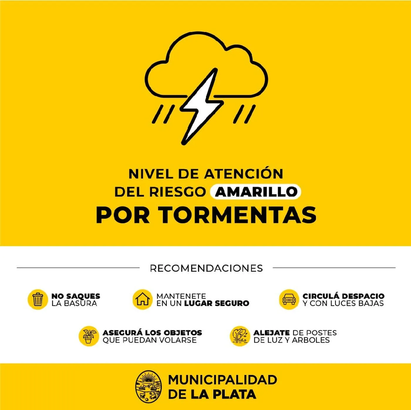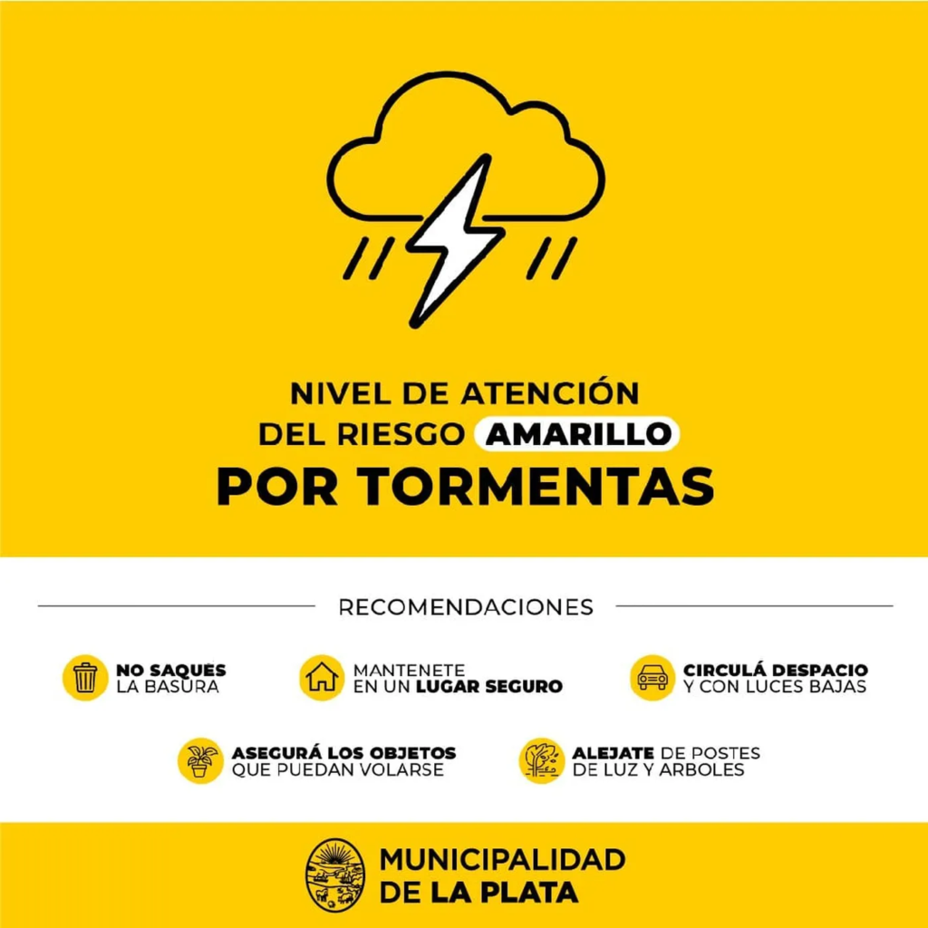 La Municipalidad de La Plata estableció el Nivel de Atención del Riesgo ‘amarillo’ por tormentas.