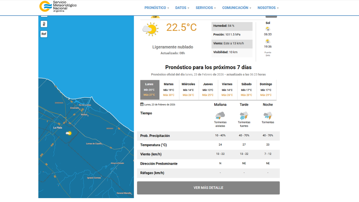 El Servicio Meteorológico Nacional emitió una alerta amarilla por tormentas que alcanza a La Plata y a amplias zonas de la provincia de Buenos Aires, además de otras 13 provincias del país. El aviso rige para este lunes e incluye la posibilidad de fenómenos intensos.