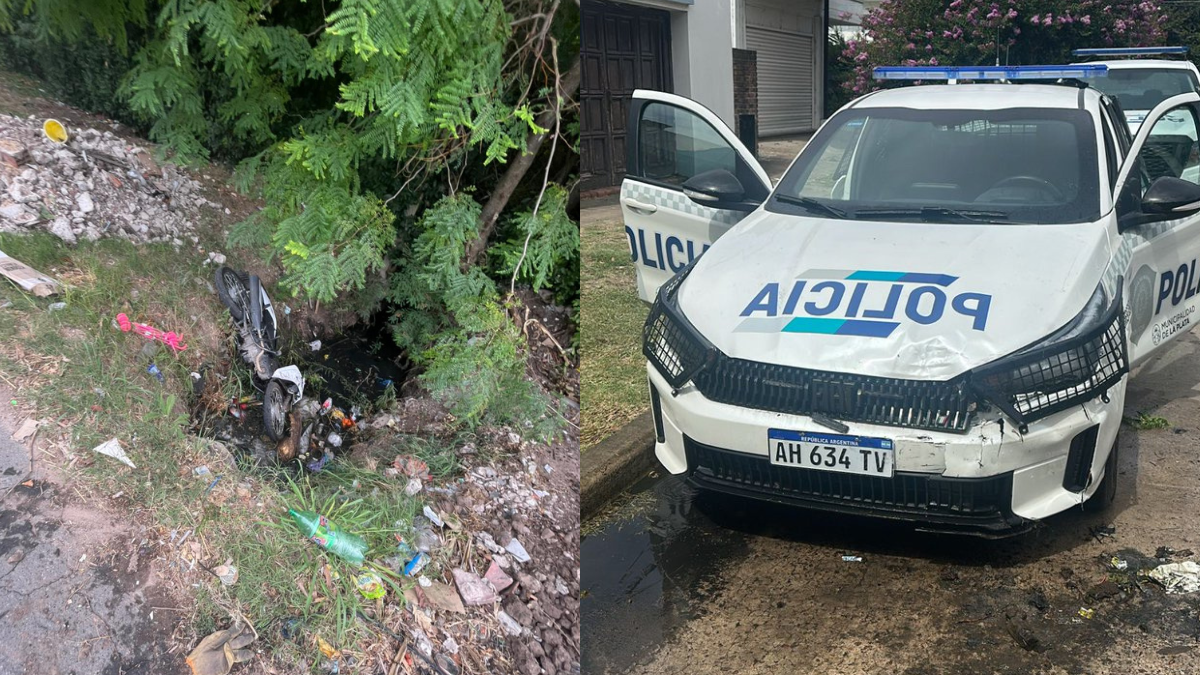 Con apoyo del GTO de la Comisaría 12ª se montó un operativo cerrojo, momento en el cual el conductor de la moto perdió el control y terminó dentro de un zanjón. El patrullero que encabezaba la persecución también cayó en el mismo sector.
