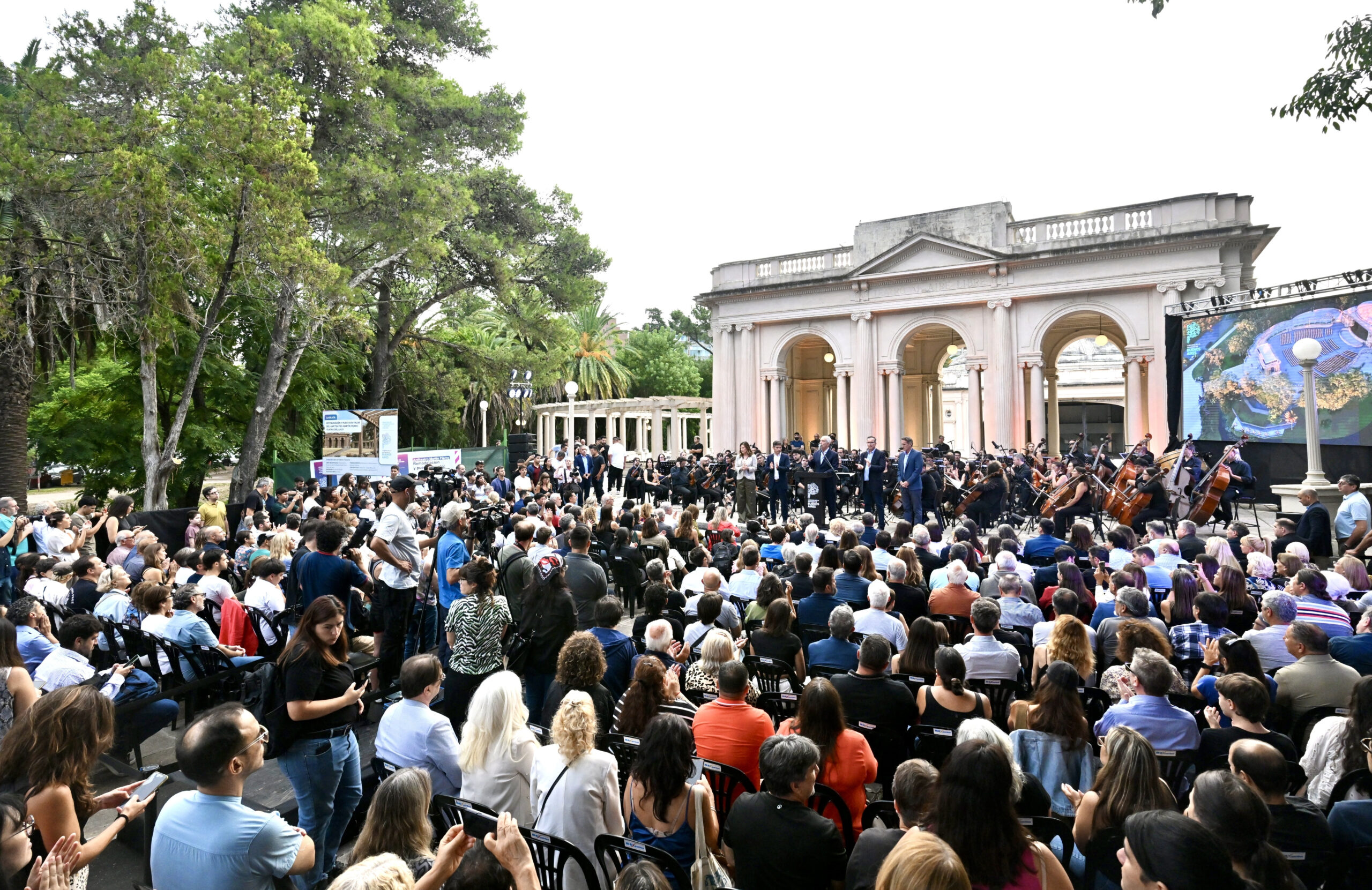 El gobernador de la provincia de Buenos Aires, Axel Kicillof, y el intendente de La Plata, Julio Alak, encabezaron este jueves el inicio de las obras de restauración y renovación integral del Anfiteatro Martín Fierro – Teatro del Lago. Fue junto al ministro de Infraestructura y Servicios Públicos, Gabriel Katopodis; la presidenta del Instituto Cultural, Florencia Saintout; y el director ejecutivo y artístico del anfiteatro, Tristán Bauer.
