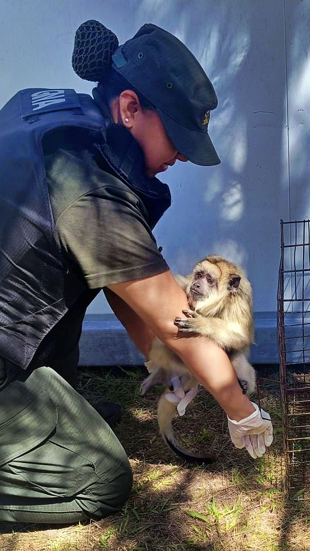 La intervención estuvo a cargo de efectivos de Gendarmería Nacional, que acudieron al domicilio tras recibir un aviso sobre la presencia de un animal silvestre en cautiverio. Al llegar, fueron atendidos por dos mujeres, quienes admitieron tener al mono y lo exhibieron ante el personal. El ejemplar se encontraba encerrado en una jaula.