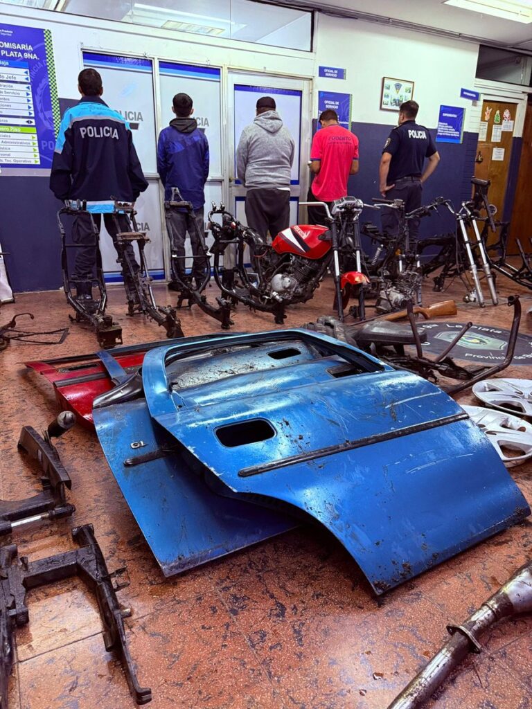 Durante los allanamientos, la Policía secuestró cuadros de motos, varios de ellos con pedido de secuestro activo y con la numeración adulterada o suprimida, además de una importante cantidad de autopartes, ruedas, motores, patentes de vehículos buscados, piezas de automóviles y un arma de fuego calibre .22.