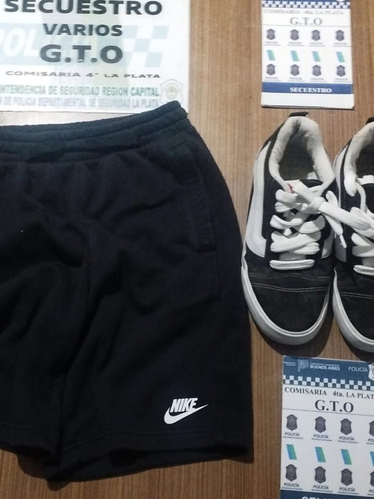 Durante el operativo realizado en el domicilio del sospechoso, la Policía secuestró un iPhone 6, distintas alhajas y varias prendas de vestir que, según la investigación, habrían sido utilizadas al momento del robo, entre ellas un short negro Nike y unas zapatillas negras Vans.