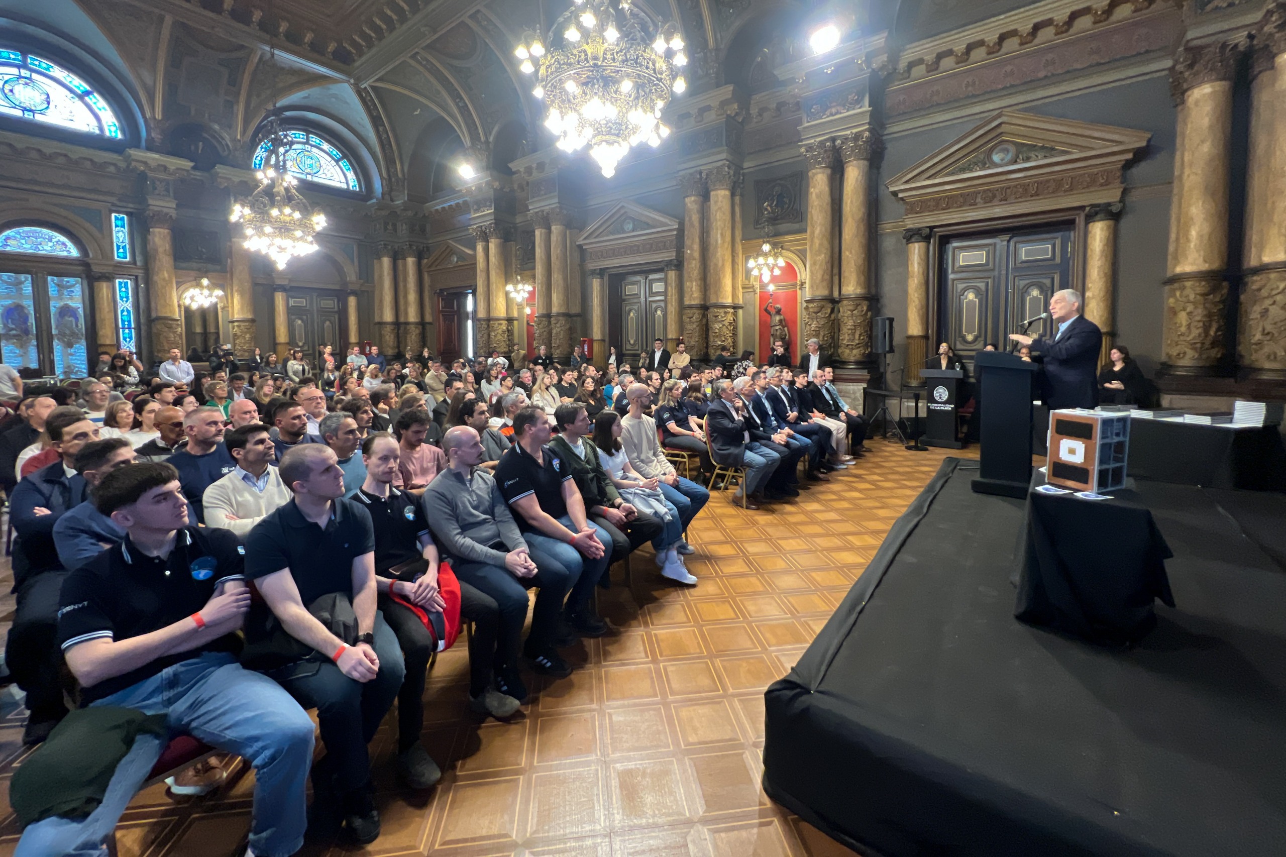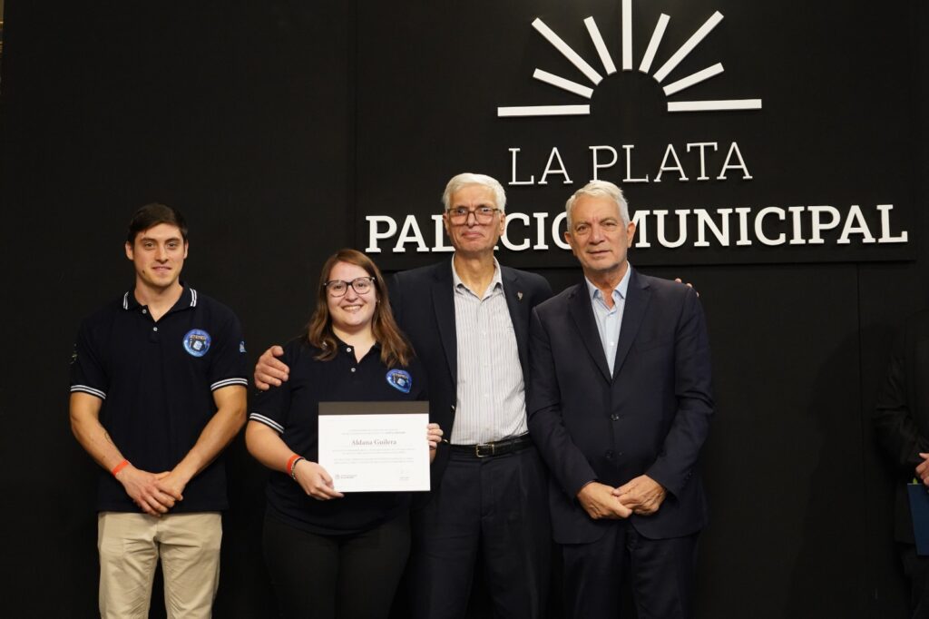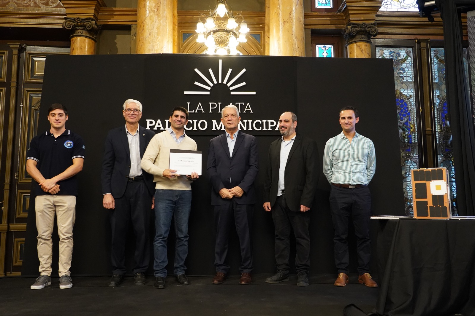 En este marco, el jefe comunal les entregó diplomas a quienes participaron y placas grabadas a las instituciones que colaboraron y declaró de Interés Municipal la labor desarrollada por la Facultad de Ingeniería, el CTA, el Instituto Argentino de Radioastronomía y el SENyT por su aporte científico, tecnológico y académico y su contribución al posicionamiento de La Plata en el ámbito del desarrollo aeroespacial.