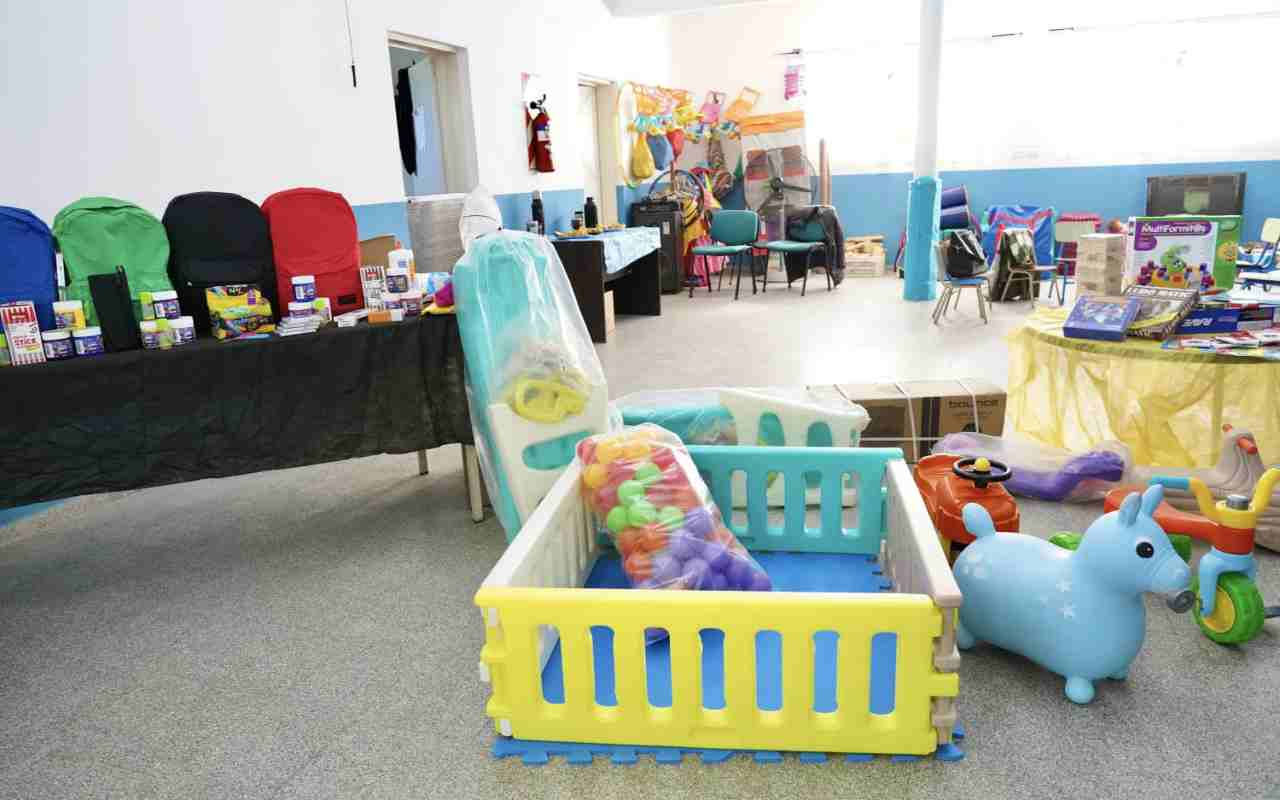 Además, en el caso de las casas del niño, se incorporaron juegos de mesa y de salón pensados para chicos más grandes, junto con libros para pintar y otros materiales orientados a acompañar las distintas etapas del desarrollo.